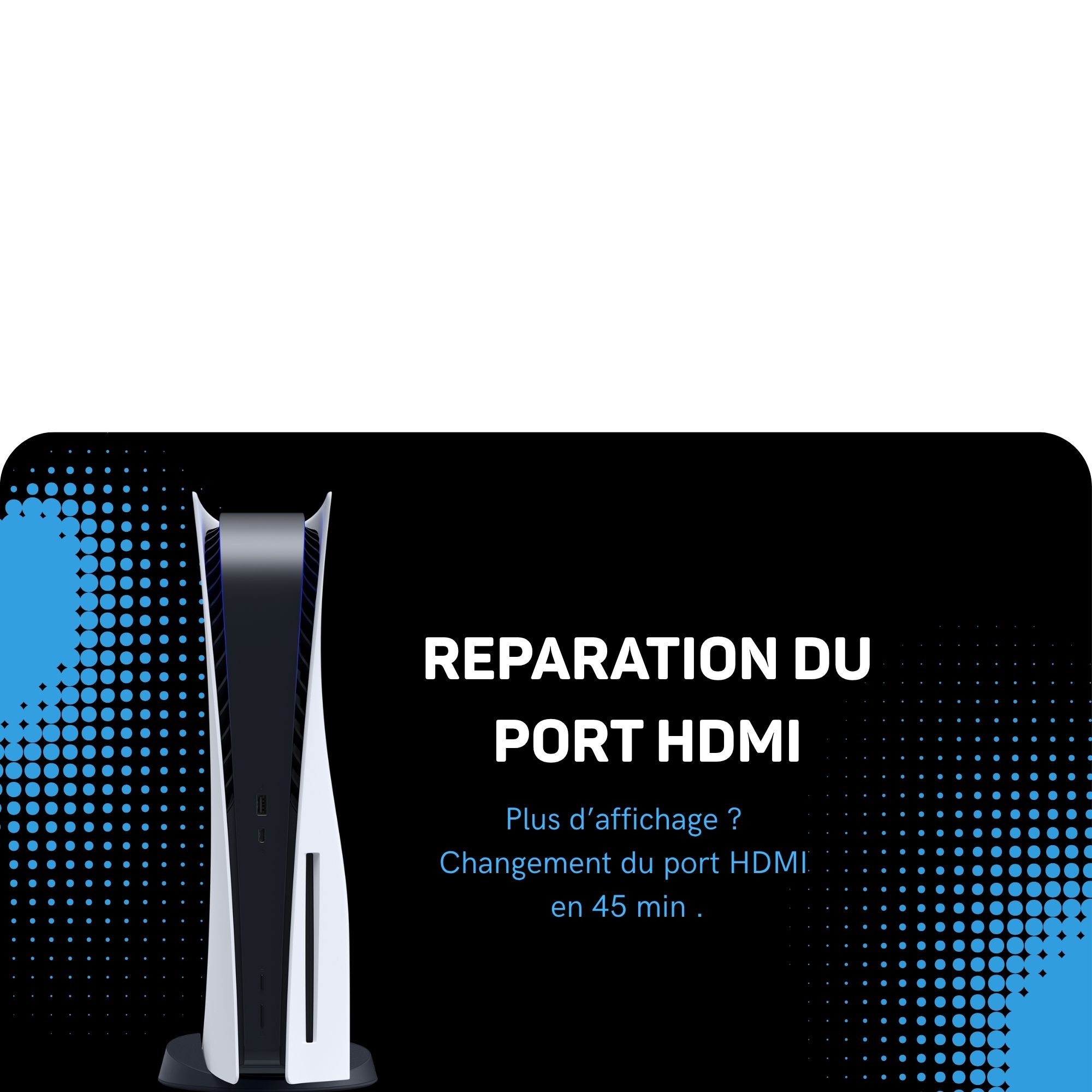 Votre PS5 n'affiche plus rien ? Nous remplaçons le port HDMI rapidement. Intervention sous 24–48h avec diagnostic offert.